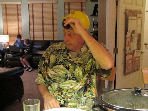 | Michael wearing Builder Bob hard hat |