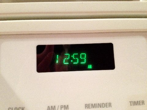 We got home at 12:59 which was really 11:59.