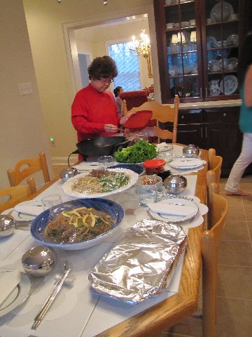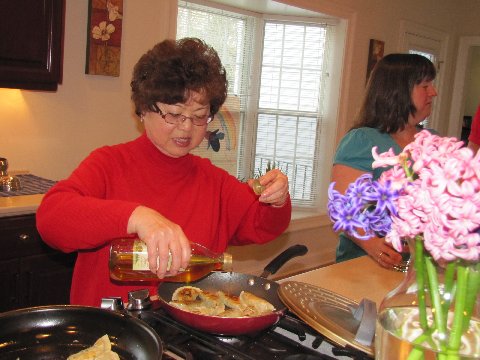 | Suzy’s mom with the finishing touch for dinner