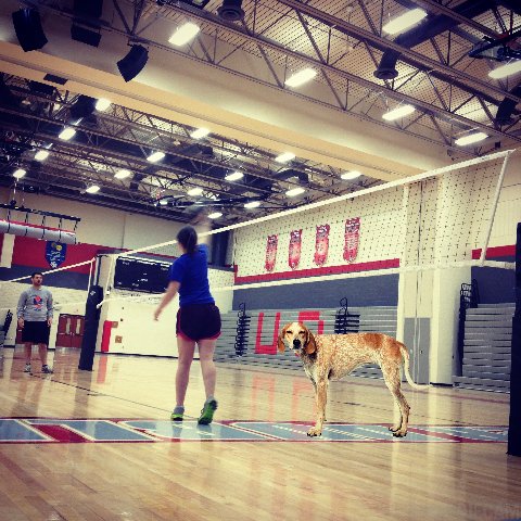 | Warming up for Monday night Volleyball. |