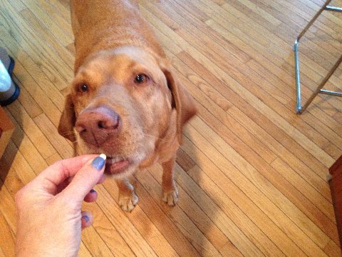 Chester getting his LAST pepcid pill!!!
