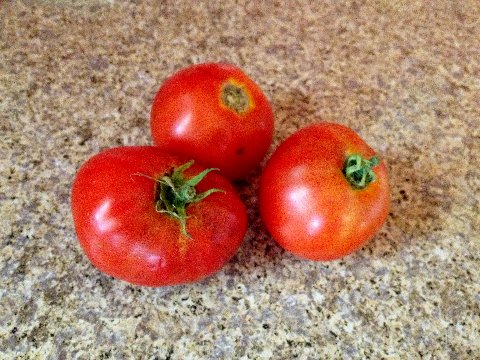 | first tomatoes from our garden!! |