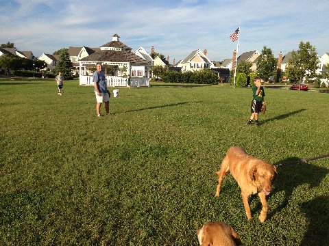neighbors & dogs playing in the open space