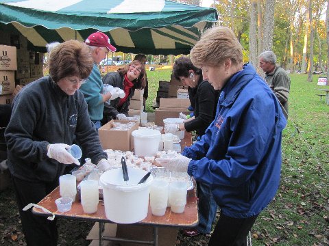 packaging the potato salad, Hi Joanne!