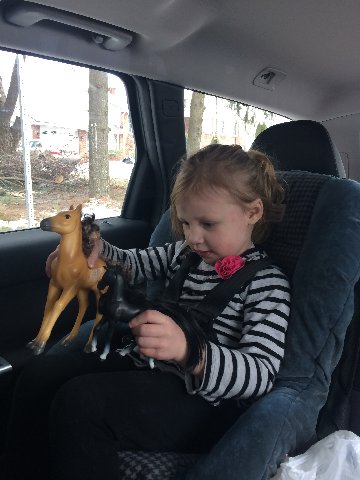 Joyce’s granddaughter playing with the horses.