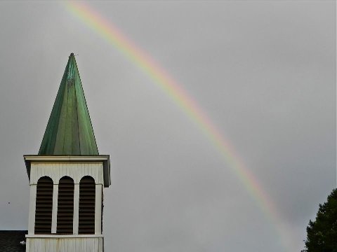 | Rainbow over the church in New Hope after the storm |