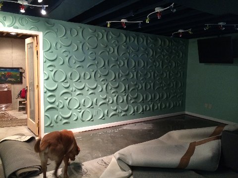 Pulled up rugs in the basement. |