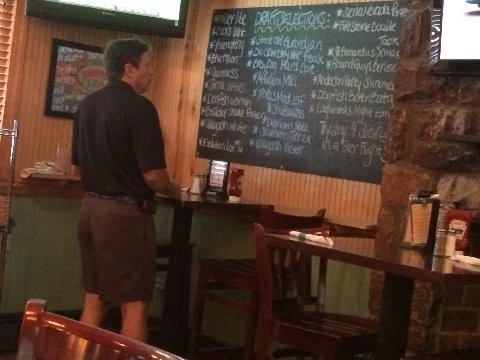Here he is checking out the beer list |
