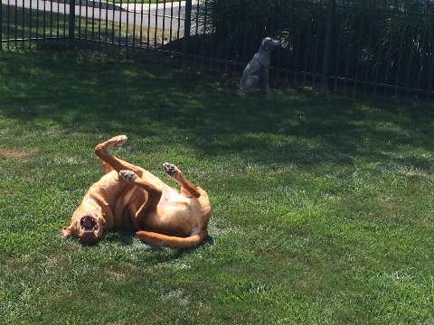 | Chester rolling in the grass being a HAPPY DOG! |