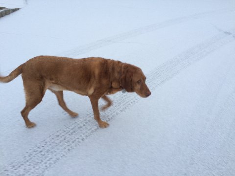 | me & Chester out for our mile run in the SNOW! |