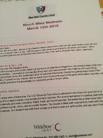 March Wine Madness Bracket for a Lobby Tasting