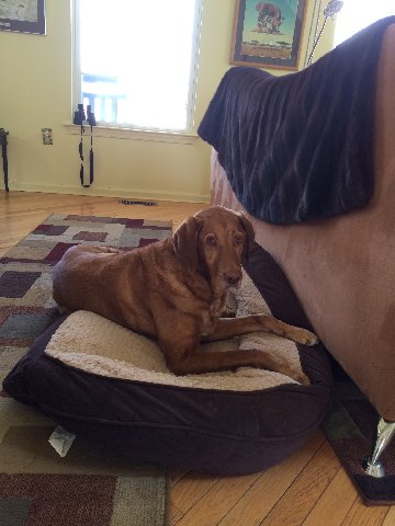 Chester sleeping on Weasel’s bed.