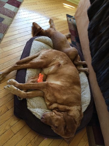 | sharing the dog bed, sort of |