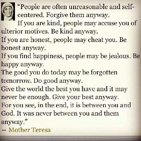 Thanks for that great saying at the end. I am printing it out and putting it on my computer monitor at work as a daily reminder